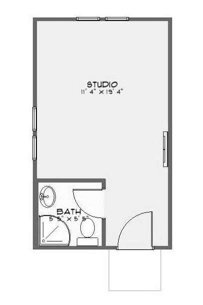 Carriage house style, wide eaves, and exposed rafter tails make this handsome design a welcome neighbor. One-car garage with workshop. Upstairs apartment with separate entrance for home office, studio, or guest suite.
