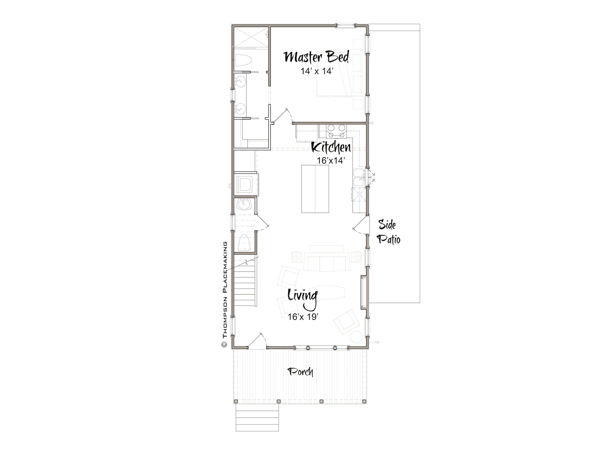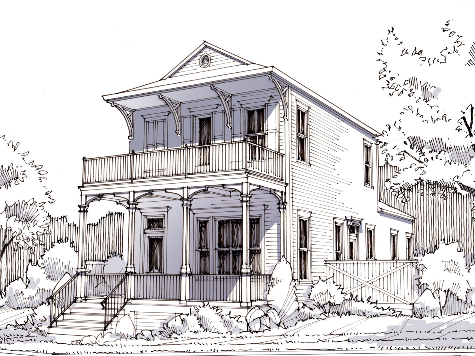 Enjoy easy, breezy days with a hint of New Orleans in this three-bedroom home with ground floor primary suite. Its compact footprint enables it to fit gracefully on small lots.